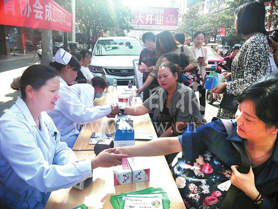 广水市日前组织开展女性健康免费体检活动,医疗专家们来到应山街道办事处东大街等地,义务为当地妇女进行健康检查,并发放了宣传册,派发了药品。(随州日报全媒记者孙洪涛、特约记者朱青、通讯员王长安摄)