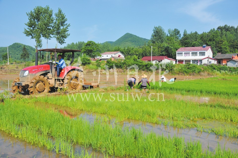 大洪山旅业公司通过引流山泉水等办法,满足景区艺术稻田及附近300亩农田插秧用水。图为6月15日,珍珠泉一组村民正在整地插秧。(随州日报特约记者贺晓利、通讯员刘慧摄)