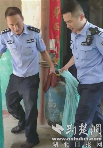 荆楚网客户端-荆楚网消息(通讯员 汪海林)家中做饭无人看管引发火灾,危急关头,民警强忍钻心的烫伤刺痛,三次冲进火场,用湿毛巾缠绕双手,合力将炙热的液化气罐抱出厨房。