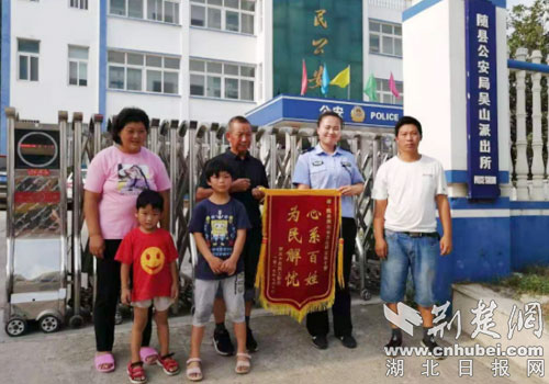 荆楚网客户端—荆楚网消息(通讯员 孙亚茹)女子因家庭琐事离家出走18年未归,湖北、河南两地警方助其找到亲属。7月22日,随县吴山镇居民彭某良带着家人来到随县公安局吴山派出所,他将一面印有“心系百姓 为民解忧”的锦旗送到民警手中,感谢民警全力帮助,使他们一家终能团聚。