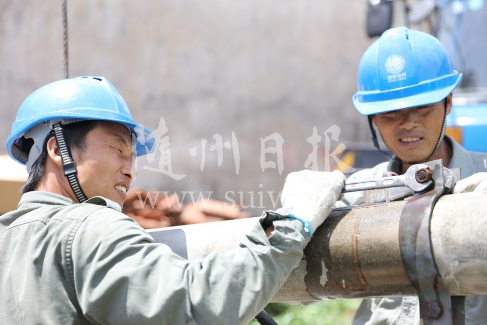 广水市供电公司员工日前顶着高温,在十里街道办事处三里河社区连续奋战4小时,成功抢修了断裂倒塌的电杆,及时保障了居民用电需求。图为员工正在拆卸“骨折”电杆上的电线等。(随州日报全媒记者孙洪涛、特约记者朱青、通讯员杨雄摄)
