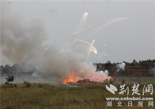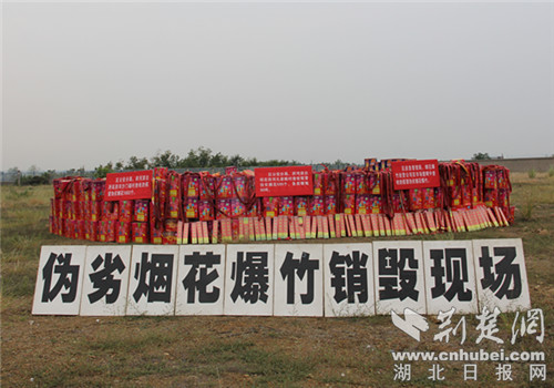 销毁烟花爆竹的场地选择在曾都区万店镇石桥村的一个宽阔无人的空旷场地。为了方便充分燃烧,2名工作人员将集中堆放的烟花爆竹洒上柴油后引燃,其他人员撤离到100米外的安全地带,开始销毁。二千余件伪劣烟花爆竹在空中炸了长达半个多小时,现场巨响不断,火星四溅,浓烟滚滚。