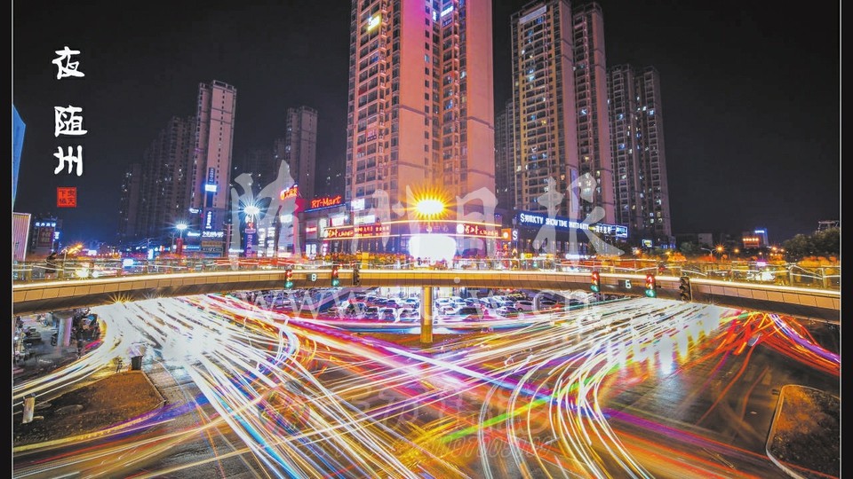 图为夜色中的大润发人行天桥(随州日报通讯员杨峰摄)
