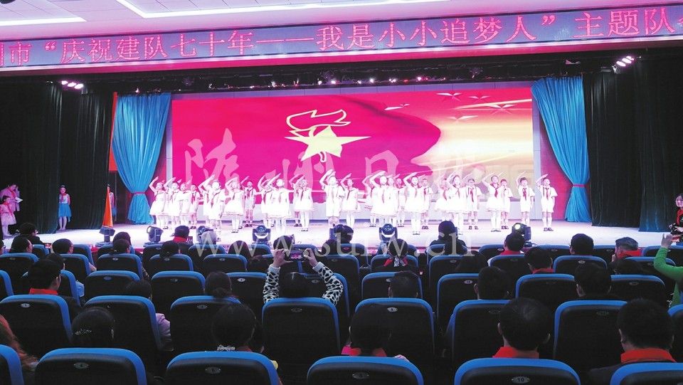 10月12日,“庆祝建队七十年——我是小小追梦人”主题队会活动举行。全市少先队员们以歌舞、朗诵等形式庆祝自己的节日,表达自己对少先队的热爱、对祖国的祝福。图为少先队员表演《争做新时代好队员》。(随州日报全媒记者冯家园摄)