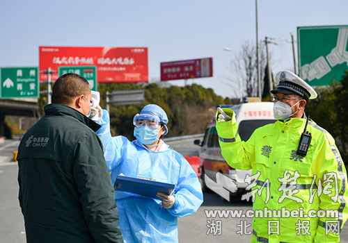 1月29日上午,在十堰东高速路出口处、在白浪路林安物流园封控点,执勤民警正联合防疫部门工作人员对进出城人员及车辆逐一进行排查,确保不漏一人,不漏一车。