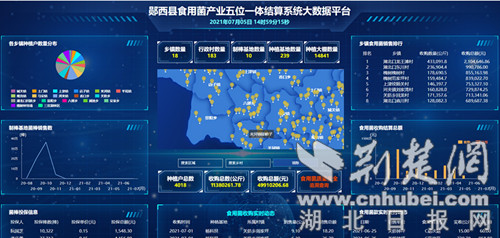 智慧农业成为特色产业的新引擎。“香菇种植户总数:4018;收购总数(公斤)11380261.78;收购总额(元):49910206.68......”走进郧西县现代农业产业园的展厅,整整一面墙的显示屏上,闪烁跳动着各项数据,从各乡镇的销售排行到菇农的投保、收购、支付动态,实时更新到秒到人。诚友(郧西)智慧农业科技有限公司技术总监梁萧说,“我们建设的这个菇农、合作社、企业、保险和政府分工协作、利益连接的智慧结算系统,可以分析菇农收益,监测管理技术水平,提高香菇的收购等级,实现公司和菇农双赢。”借助诚友公司的技术和现代化管理,目前该县香菇年制棒能力达2500万棒,年实现产值10个亿,带动2万人实现就业增收。