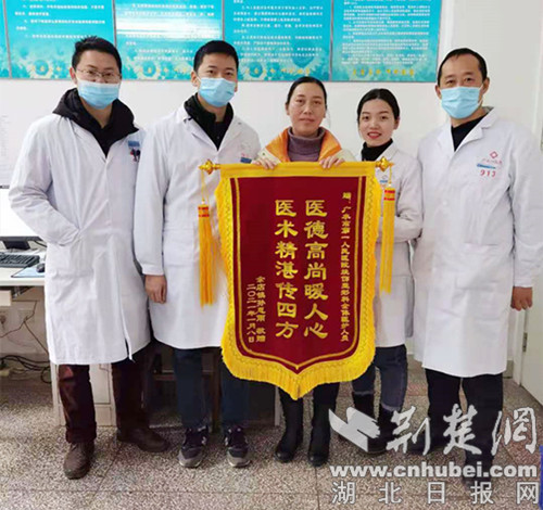 在科室医护团队的专业治疗和静心护理下,每个疗程结束后都能看到明显的治疗效果。眼看着孩子痊愈在即,一家人脸上的笑容也越来越多了。1月11日,赶在出院之前,妍妍一家将一面写着“医德高尚暖人心,医术精湛传四方”字样的锦旗送到了广水一医院皮肤烧伤整形美容外科医护团队的手中。