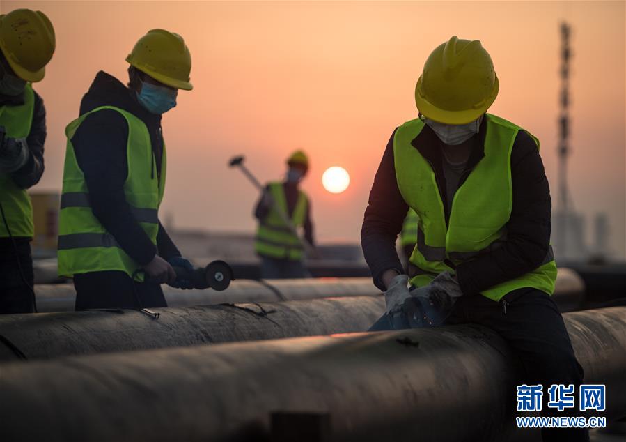 2月4日,在武汉雷神山医院建设工地,来自中建三局的建设工人在加紧施工。