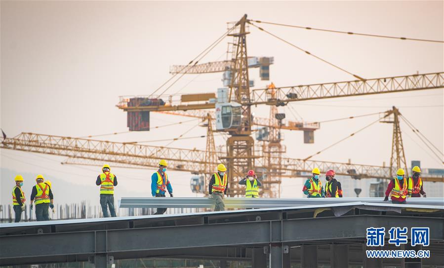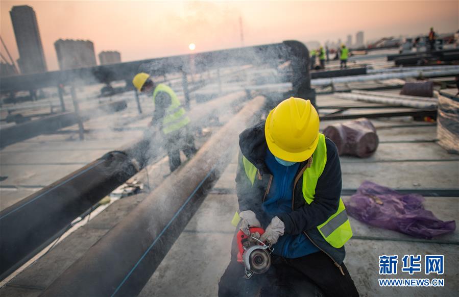2月4日,在武汉雷神山医院建设工地,来自中建三局的建设工人在加紧施工。新华社记者 肖艺九 摄