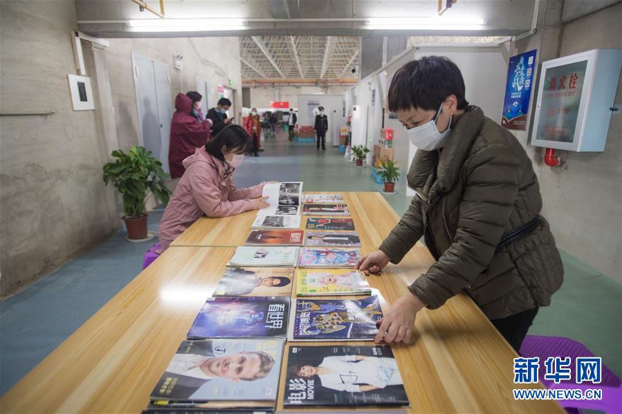 2月25日,在武汉市青山楠姆方舱医院,工作人员将图书摆放至书架。 截至2月25日,湖北省图书馆、武汉市图书馆、武汉市各区图书馆、武汉市新华书店等单位,共同建设了23座“方舱书屋”,覆盖已开放和暂未开放的方舱医院,同时还建立了疫情信息服务专栏、线上数字阅读、“方舱数字文化之窗”等线上文化服务平台。这些图书包括经典文学、卫生健康、科普知识、心理疏导等类别,同时配送书架、书桌等。 新华社记者 肖艺九 摄