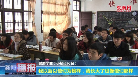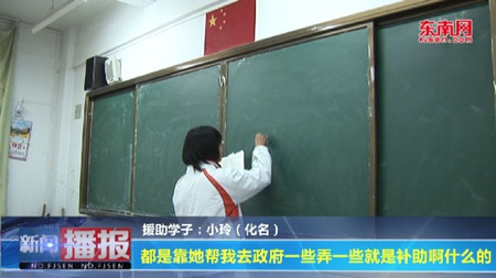 这位正在认真听课的女孩叫小娇(化名),来自宁德二中,是一名即将参加今年高考的高三学生,由于家中负债,父母不得不外出打工,在莆田种草莓和西瓜以挣取基本的生活费用,而这笔微薄的收入正是她和在念大二的哥哥两个人每月的生活费。