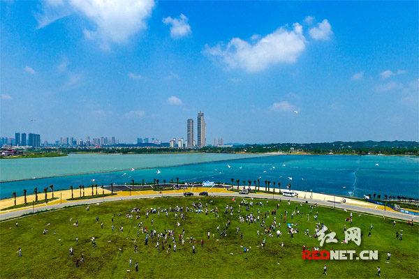 在这里,人们可以骑着自行车环湖赏景,也可以在红色跑道上锻炼健步,还可以在廊桥花海中自拍、在沙滩上恣意洒脱地玩乐……“四面荷花三面柳,一城山色半城湖”,连绵的湖岸如同一卷画轴,这里的时光格外缓慢,行走其间,怡然风光和时尚色彩无处不在,湖面吹来的凉风让人心旷神怡,暂时忘却夏日的炎热。