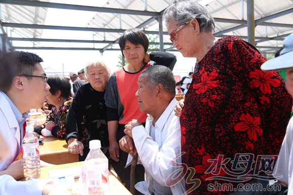 水母网5月27日讯(记者 张大明)“医生,我有头疼的老毛病,看了好几次也没治好,疼起来真是遭罪,有一次还晕倒在果园里。”5月27日上午10时,蓬莱市大柳行镇黑石村村委会大院内热闹非凡,村民王美清正在向滨州医学院烟台附属医院神经内科主任、博士后詹焱介绍病情。此时,在旁边的皮肤科、内分泌科、妇产科、消化内科、骨科……每一名专家的诊疗桌前,都围着数名等待咨询的村民。这里是由水母网倡议发起的“健康烟台 医疗扶贫”大型公益活动的第一站,17位来自烟台市各大医院的顶尖专家前来为黑石村及周边村民提供免费诊疗服务。