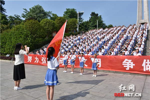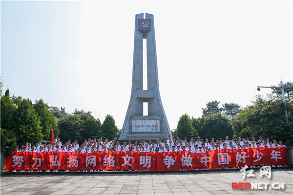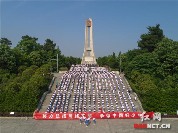 为进一步贯彻落实习近平总书记“让网络空间清朗起来”的重要指示精神,迎接《网络安全法》正式实施,日前,红网携手郴州市第四完全小学、湘南起义纪念馆联合组织“小手牵大手”绿色上网公益活动,在湖南郴州湘南起义纪念塔前, 1500名小学生高行队礼、齐声倡议:“文明上网,争做网络时代中国好少年,好网民”。