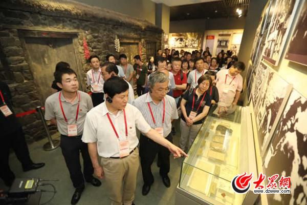 28日下午,代表团首先来到临沂市费县大青山胜利突围纪念馆参观。代表团成员们通过一幅幅珍贵的历史照片和一座座栩栩如生的英雄群雕像,回顾了这场的悲壮突围战。在这场被称为山东抗战的“平型关”战役中,陈明、辛锐夫妇和国际友人汉斯·希伯等烈士的英勇事迹,感动了在场每一位代表团成员。
