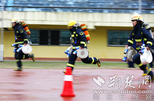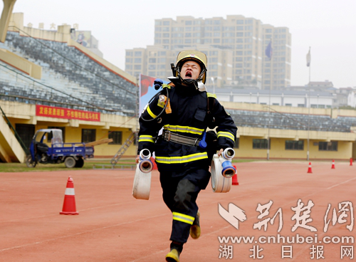 图为开展60米肩梯跑科目现场。 通讯员 朱燕林摄