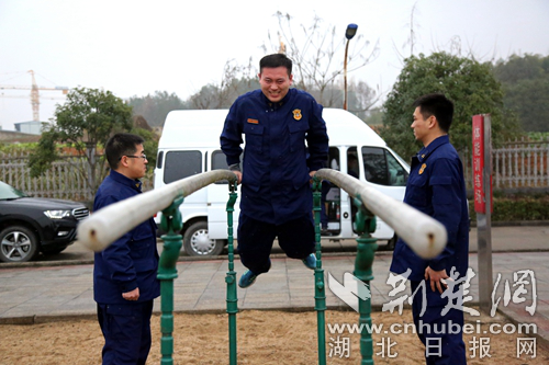 图为开展单双杠科目现场。 通讯员 朱燕林摄