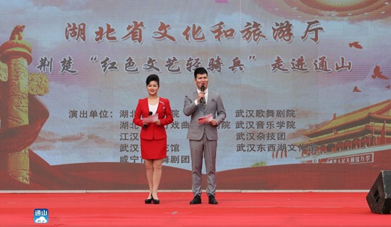 云上通山讯(通讯员 邓文义 邓娜)暖风和煦,遍地芬芳,最美人间四月天。4月11日,由省文化和旅游厅主办,省文化活动策划中心、咸宁市文化和旅游局共同承办的“荆楚‘红色文艺轻骑兵’文化扶贫”大型文艺演出走进板桥村,给村民奉上了一顿丰盛的文化大餐。省纪委派驻省文化和旅游厅纪检监察组组长、党组成员陈锴,市委副秘书长、省纪委驻通山工作队队长、副县长胡长学,县委常委、纪委书记、监委主任刘海元,县委常委、宣传部长吴柏林观看演出。