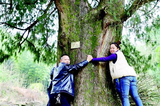 图为:几人合围才能抱住古树