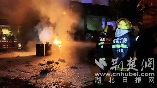 荆楚网客户端—荆楚网消息(通讯员 朱燕林 肖帮治)5月5日19时47分,湖北省咸宁市高新区横沟桥镇加油站附近起火。咸宁市消防救援支队接到报警,迅速调派特勤消防中队出动3辆消防车、14名指战员火速赶赴现场处置。