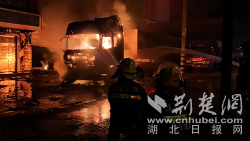 图为消防指战员扑灭货车火灾现场。 肖帮治摄