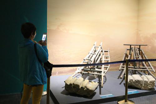 云上咸宁报道(赤壁台记者 王丽燕)7月30日,赤壁赵李桥茶厂与内蒙古博物院合作的“万里茶道八省区联展”在呼和浩特市如期开幕,赵李桥茶厂布展的“砖墙”引来游客驻足。