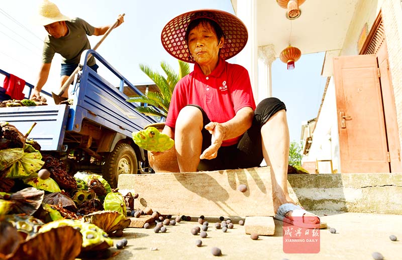 “现在每天5点半就下田,天太热,一般采到9点多收工,怕中暑。”刘思群用衣袖擦了一把汗水介绍,夏天是莲子的高产季,村里大概有60多户种湘莲,每天100多人在田里劳作。