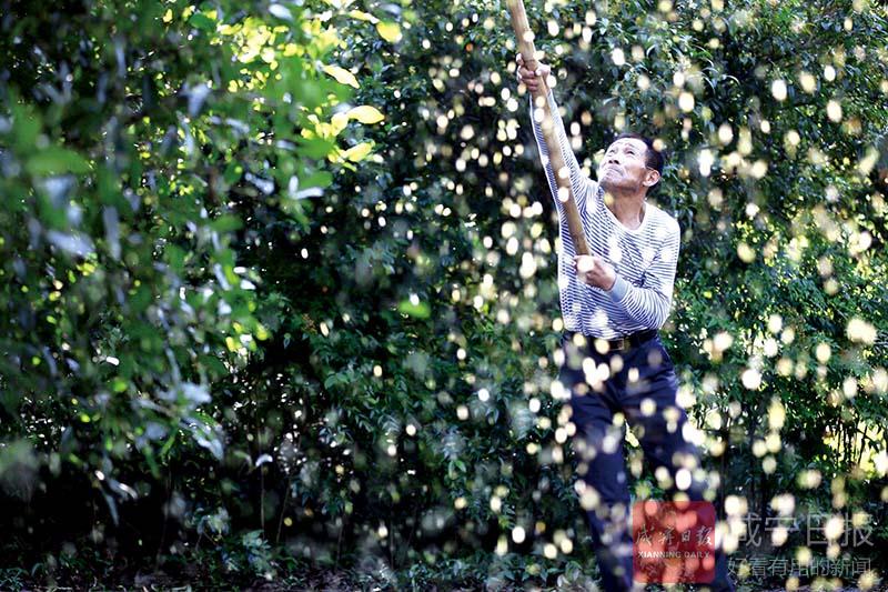 10月19日早上7时许,咸安区桂花镇的村民们,扛起竹篙,带上棚布,欢快的上山打桂花。