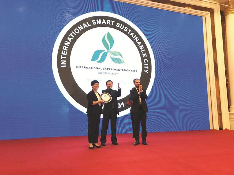 图为:咸宁被授予“可持续发展国际标准试点城市”。
