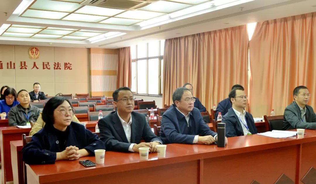 省市县相关领导在通山县人民法院安保指挥中心观摩庭审直播