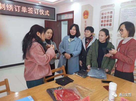 2019年12月11日,通山“绣娘”获得首批订单,踏上将“指尖技能”转化为“指尖财富”的第一步,也是通山县“巧山姑”手工技能培训项目初步成效的体现。订单设定老鼠生肖肚兜、高山流水书签、小夜灯绣片等12种样式,共含绣刺任务500余件。绣娘收到订单消息后,各个欢欣鼓舞,喜笑颜开,不少绣娘们互相鼓劲打气,摩拳擦掌准备大干一场。回应绣娘们的殷切期盼,订单签订仪式于当天下午在通山县南林桥镇石门村举行,咸宁市妇联主席陈海莲、副主席张继萍、通山县副县长张晓丹参加活动,县妇联主席张丹主持。