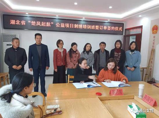 签约仪式上,首先由大冶刘小红刺绣艺术文化有限公司董事长刘小红详细介绍了订单的情况及要求,并现场与通山县石门绣坊成功签订合约。