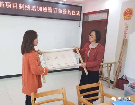 陈海莲主席希望绣娘们认真对待此次订单,用心绣好每一幅作品,打好刺绣订单的第一站,用高质量产品为通山刺绣产业树立好形象和好口碑,希望通山县委县政府一如既往重视妇女手工,引进更多手工产品,创造更多适合妇女创业就业的岗位。