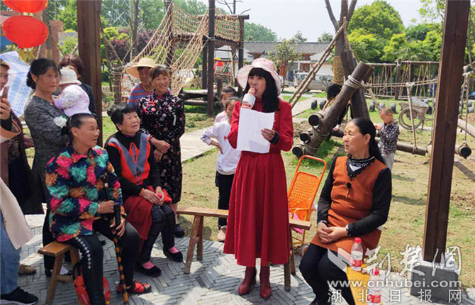 “栗林咀哟,福气旺,省市领导都关怀;幸福食堂,人气旺,孤寡老人笑开怀……”现场一位77岁的老人用自己现编的词曲配合渔鼓调,感慨着美丽乡村带来的喜人变化。