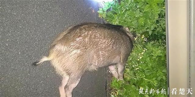 一辆重庆籍面包车行驶至沪渝高速仙桃服务区附近968公里时,一头野猪突然蹿到路面,面包车驾驶员胡某来不及反应,车头撞上了野猪,野猪当场死亡,面包车车头受损。
