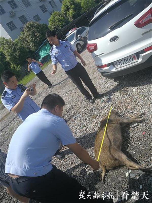 接到报警后,高警仙桃大队民警迅速出警处置,其车辆损失将由保险公司赔偿。民警在现场看到被撞的野猪体长1.2米,约90斤,已移交给仙桃市森林公安及野生动物保护站带走,将会无公害化焚烧处理。
