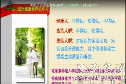 仙桃市委组织部、市卫健委关心党员干部身体健康,高度重视党员干部的健康教育工作,决定从今年11月份起,每月结合党支部主题党日活动开设党员健康课,组织党员观看健康教育视频。由市卫生健康委结合季节变化、工作实际,提供高质量的健康教育视频,市委组织部统一下发到全市各党组织观看,并学习“健康中国”行动的各项重大决策部署。