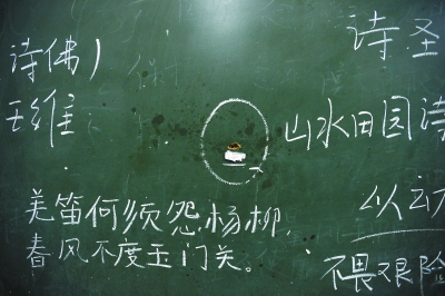 昨晚10时,事发教室黑板上还留有弹孔和老师上课的板书