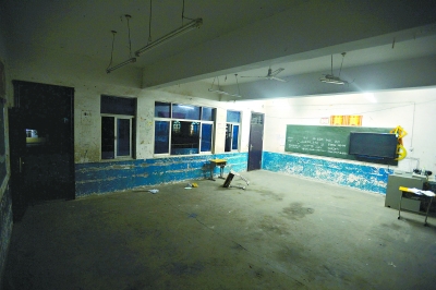 昨晚10时,事发教室里的书桌几乎被搬空,一个损坏的书桌倒在地