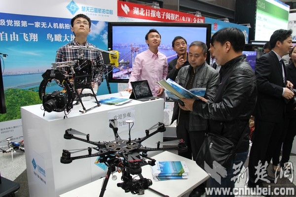 “这个飞机最高能飞多少米?”楚天云图航拍中心的展台前,不少嘉宾纷纷与无人机合影留念,并咨询了许多专业问题。咸宁日报网络传媒中心主任朱封金在观看了楚天云图为世界自然遗产张家界景区拍摄的宣传视频后,他笑称想拜师,“无人机拍摄的视角独特,画面清晰,视频流畅稳定,确实值得称赞”,。
