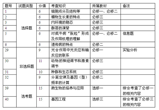 从上表可以看出,今年的生物试题具有以下几个特点: