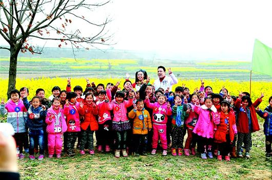 图为:2015年3月10日,武汉广播电视台主持人走近新洲区宋寨村留守儿童。(视界网 吴汉 摄)