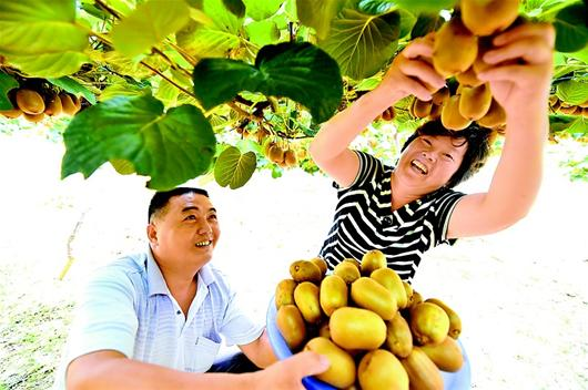 图为:2015年9月8日,十堰市张湾区农民喜收猕猴桃。(记者 刘曙松 摄)