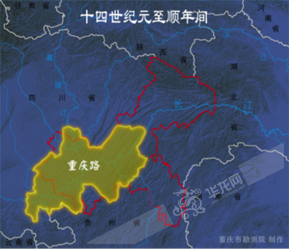 元朝实行省、路、府(州)、县四级政区制。元朝在行省之下,分道设立宣慰司,1279年(至元十六年)在重庆设四川南道宣慰司。下辖重庆路、夔州路(治今奉节县)、绍庆府(治今彭水县)、怀德府。元末明玉珍建大夏国,以重庆为国都。