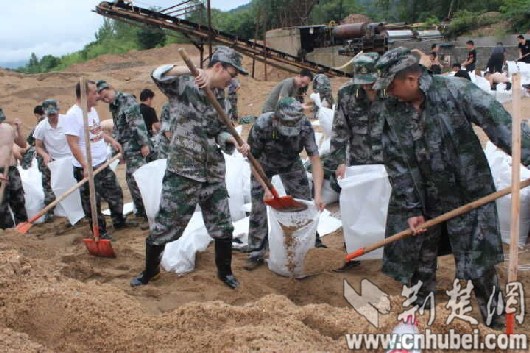 7月1日15时,英山县人武部接到县防汛办出动民兵支援的请求后,部长邹迪祥、政委林国兵带队迅速组织三个批次民兵共计600余人次,发扬连续作战精神,装填沙包加固河堤,直至7月3日12时,查明水位退至安全线,才撤离留守监控汛情人员。
