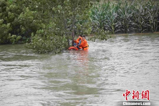 当时事发现场树木密,洪流湍急,水下情况不明,有14位村民被困,其中包括一个小男孩和一位70多岁的老奶奶。消防官兵准备先用皮划艇救人。可没想到,湍急的急洪流差点将皮划艇打翻。就在小孩和老人落水即将落水时,两名消防战士飞身跃下,抱住了小孩和老人,随着洪水被冲至下游1公里左右的大树下后停住。