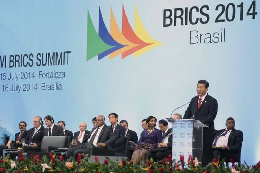 ——2014年7月15日,在巴西福塔莱萨出席金砖国家领导人第六次会晤时发表讲话