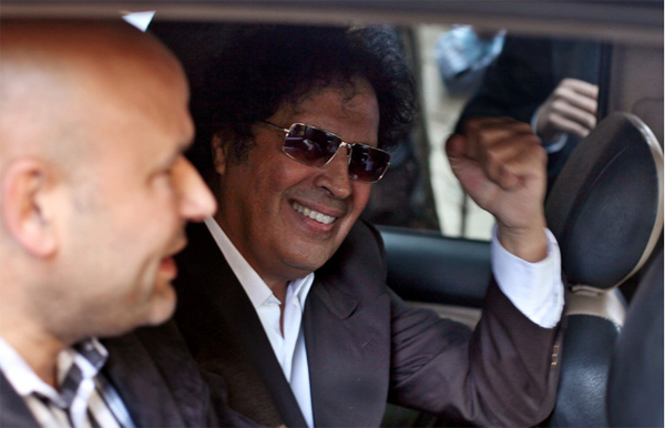 卡扎菲表弟达姆(右)在埃及落网,微笑面对毫不在意。