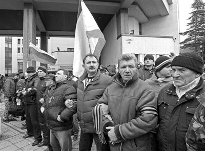 最近几天,克里米亚各地接连发生亲俄罗斯的示威游行,人数最多的达到数千人。塞瓦斯托波尔政府机构前的一面乌克兰国旗也被降下,换成了俄罗斯国旗。