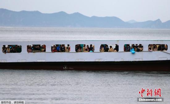 4月17日清晨,失踪者家属乘坐渡轮前往事故现场。